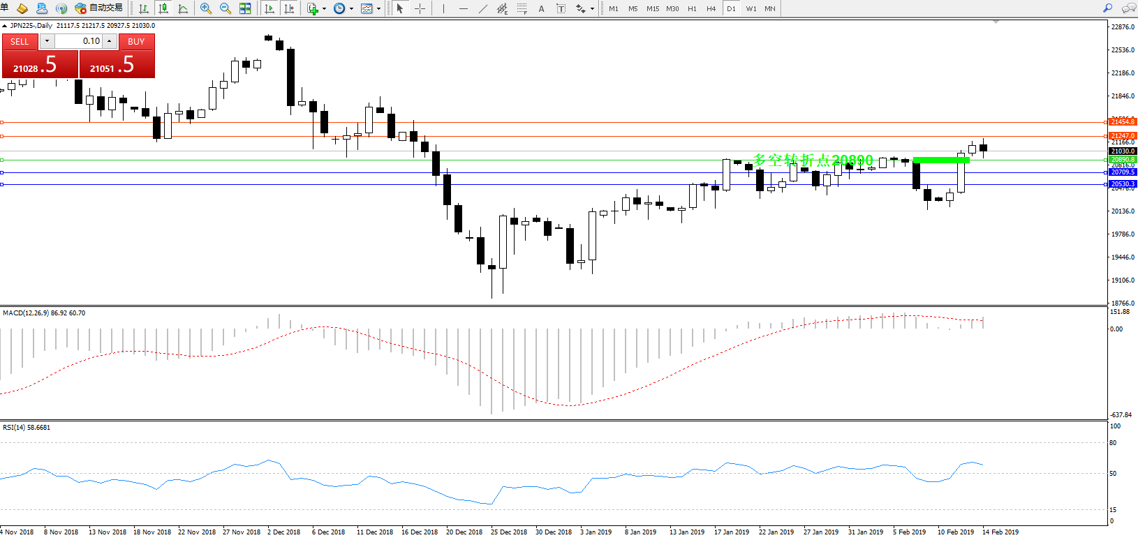 日本股市在星期四走低,其中橡胶、矿业和造船业等下跌的板块带领股指走低。日本东京收盘时,日经225指数下跌0.02%。日经指数周四从两个月高位回落,终场收平,投资者在近期股市上涨之后稍作喘息,另外部分公司的获利令人失望,限制了大盘涨势。由于市场预期中美贸易紧张局势将会缓和,华盛顿也将避免政府再次出现停摆,日经指数之前两日涨近4%,之后获利回吐涌现,令涨势衰竭。