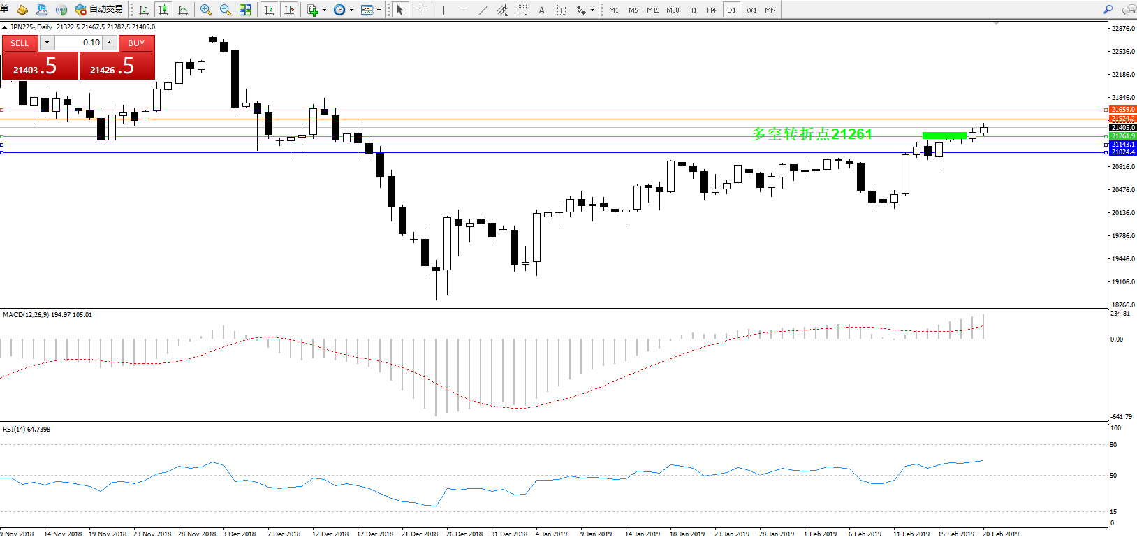 虽然目前中美贸易谈判市场预期乐观,但谈判目前还没有给出明确的结果。投资者还需要耐心等待。此外,美国和欧盟、日本的有关于汽车的贸易问题也在近期引发的市场关注,如果美欧贸易,或者美日贸易出现新的争论,那么这也会给市场风险情绪带来冲击。日经225指数涨0.57%,收于21,423.50点,为12月17日来最高收位,受中美贸易协议乐观情绪提振,汽车等景气循环类股以及软银等权重股走高。