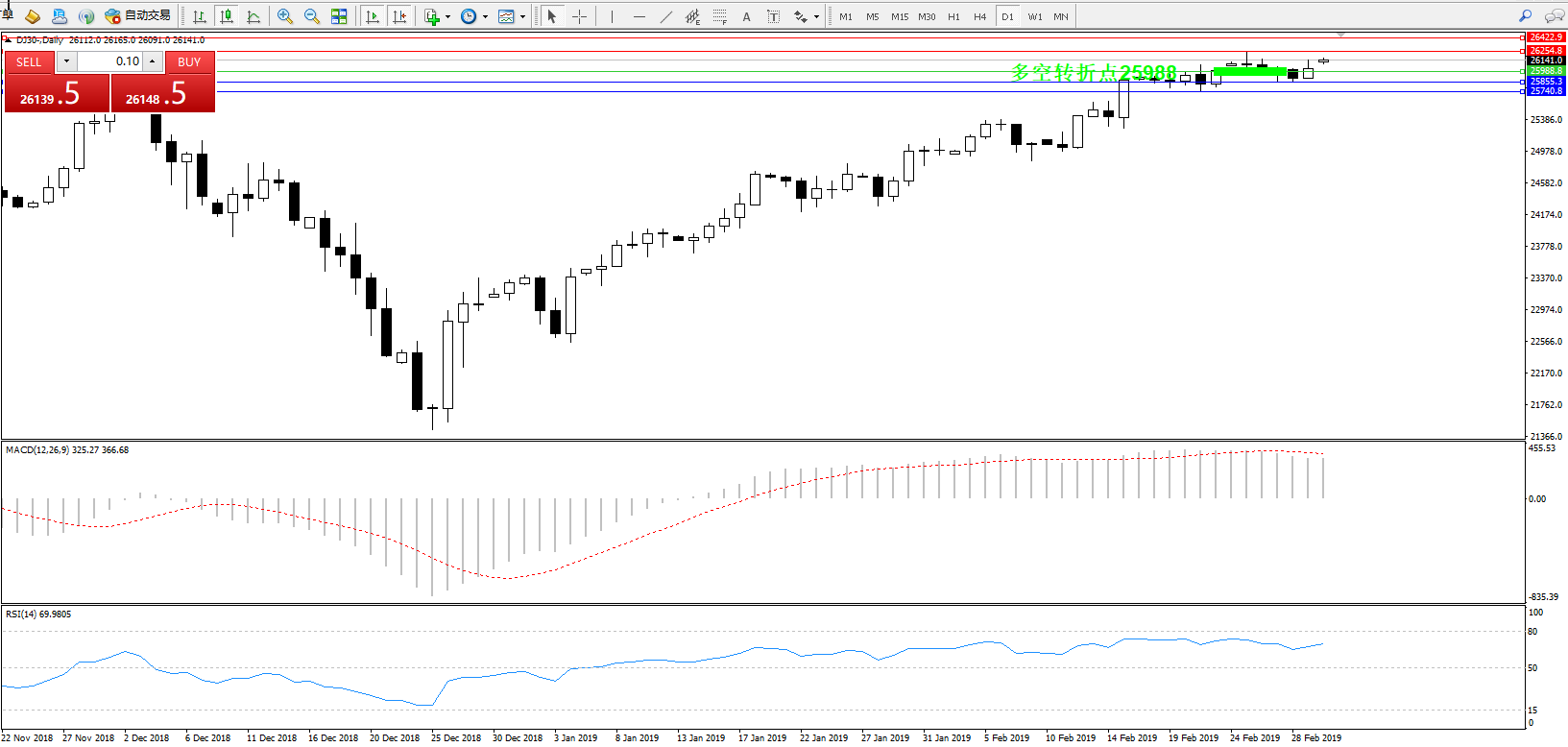 道琼斯指数DJ30—— 日K线图显示: