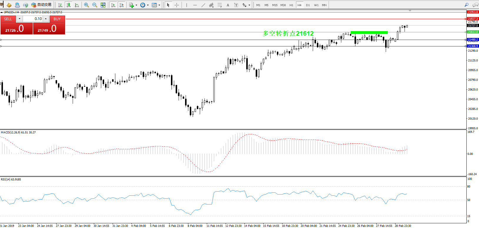 日本股市日经指数 .N225 上周五涨至两个半月高点,受期货买盘提振。此前美国好於预期的GDP数据提振,助日本出口商一臂之力。日经指数N225 收涨1.0%至21,602.69点,为12月13日来最高收位。上周该股指累计上涨0.8%,连续第三周周线上涨。市场仍将情绪谨慎,关注美中贸易谈判进展。美国总统特朗普上周四警告称,如果与中国的贸易协议不够好,他可能放弃。