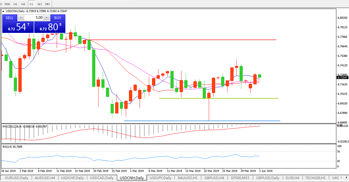 美元兑人民币USDCNH    日线图: