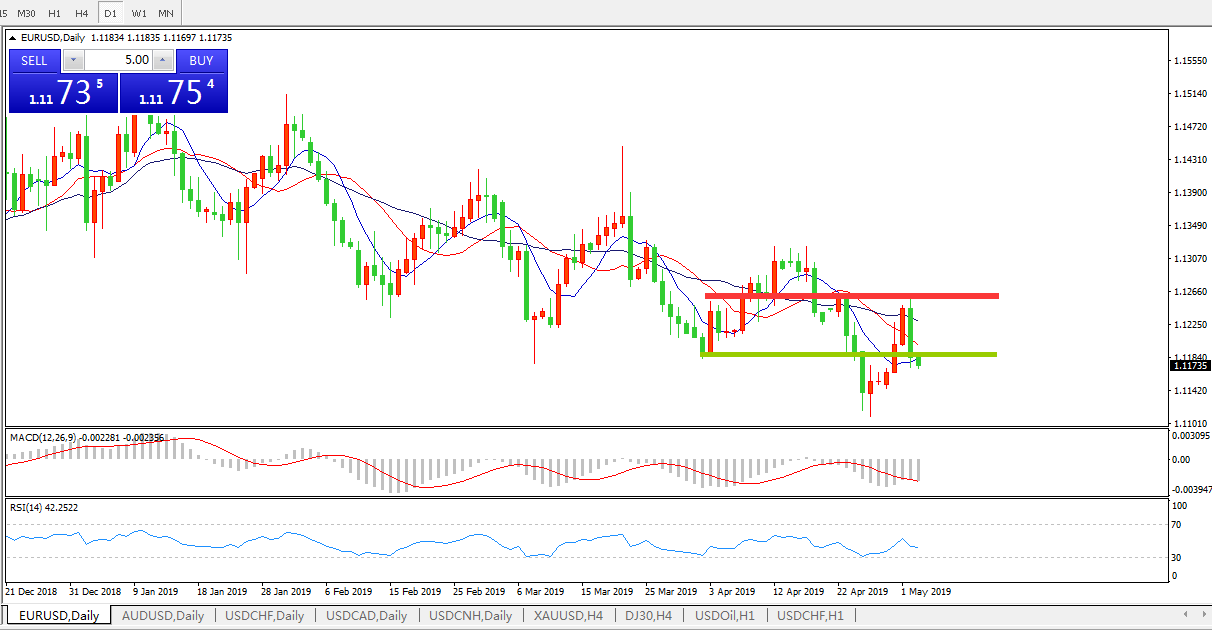 交易策略:1.1200之下,看跌,目标价位为 1.1100,然后为1 .1030