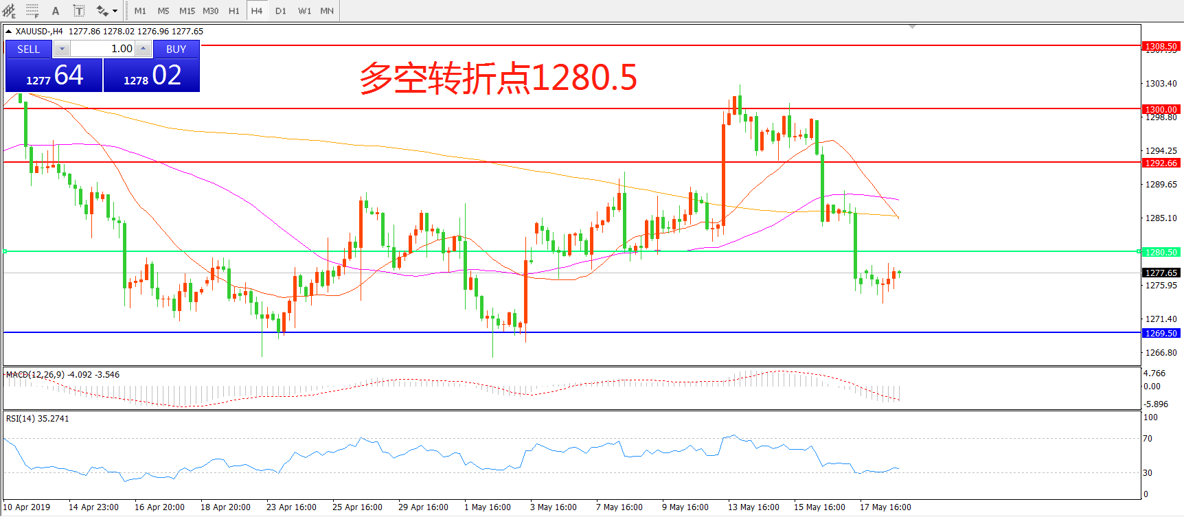 交易策略:在1280.50之下看跌,目标1269.50   1250.00