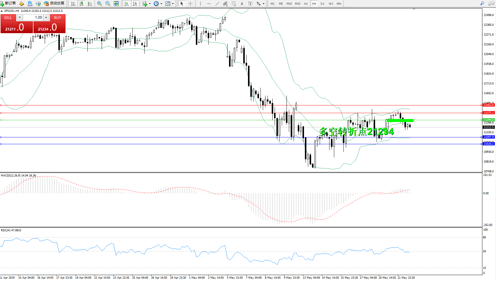 日经指数收盘小升,整体市场气氛审慎,此前数据显示日本4月出口再度下滑,抵销了一些经济的正面迹象。出口股和科技股回吐稍早涨幅,日经指数N225收高0.1%21,283.37点,盘中窄幅区间波动,因美国和中国的贸易战没有降温的迹象,市场信心仍旧脆弱。稍早数据显示,日本4月出口连续第五个月萎缩,虽然机械订单意外回升,暗示经济前景恐怕步履维艰。摩根资产管理全球市场策略师Yoshinori Shigemi说道:“市场仍趋紧,日股仍有进一步下滑的风险。”