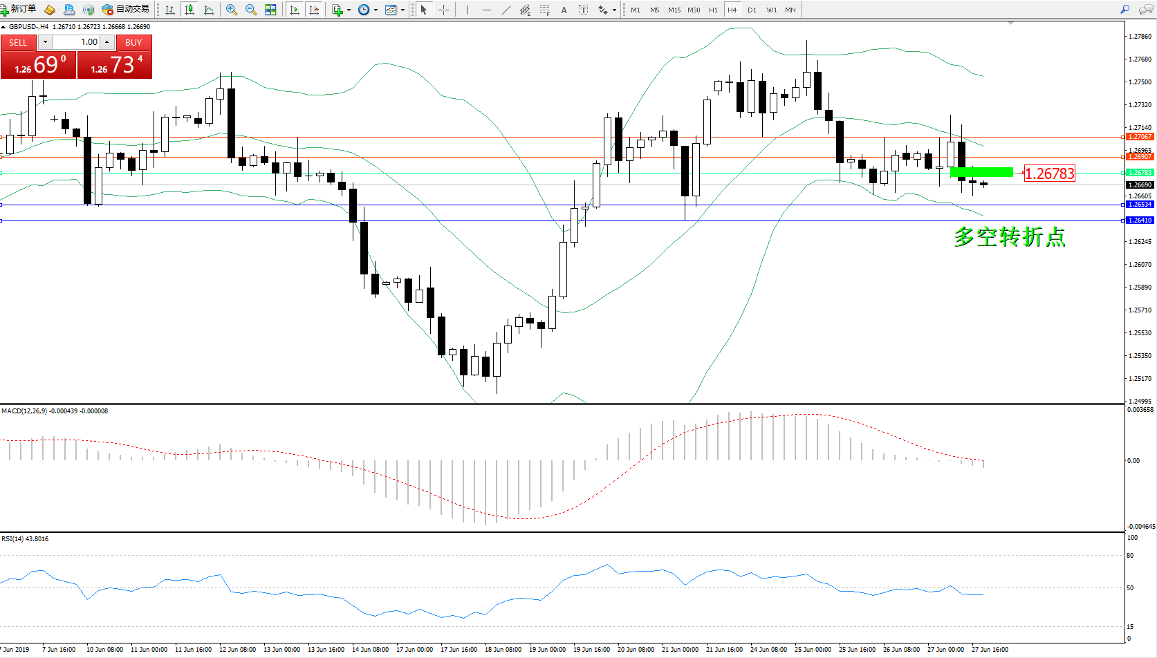 交易策略:1.26783下方看跌,目标1.26534、1.26410