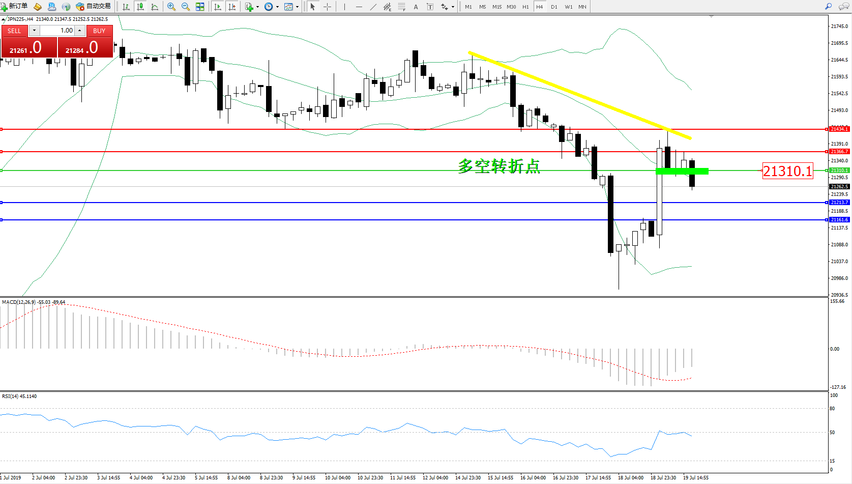 日经指数JPN225——4小时K线图: