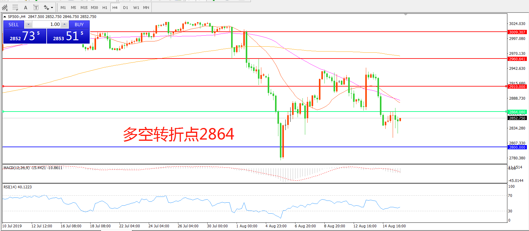 交易策略:在2864.00之下看跌,目标2800.00    2737.00