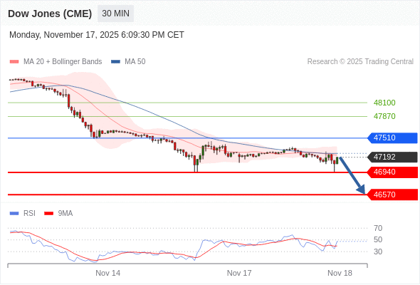 在 47510 之下,看跌,目标价位为 46940 ,然后为 46570 。