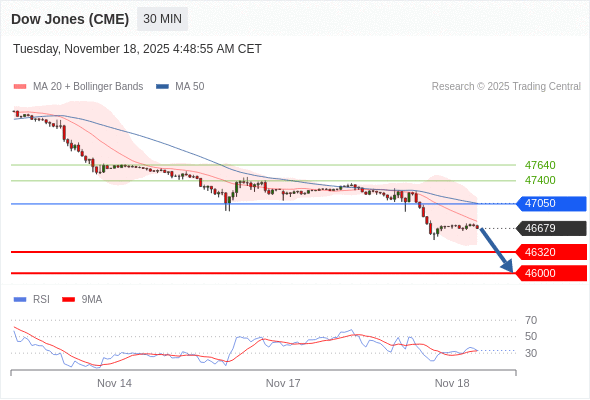 在 47050 之下,看跌,目标价位为 46320 ,然后为 46000 。