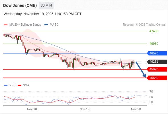 在 46570 之下,看跌,目标价位为 45970 ,然后为 45650 。
