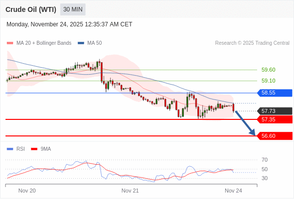 在 58.55 之下,看跌,目标价位为 57.35 ,然后为 56.60 。