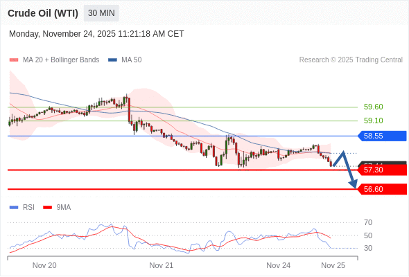 在 58.55 之下,看跌,目标价位为 57.35 ,然后为 56.60 。