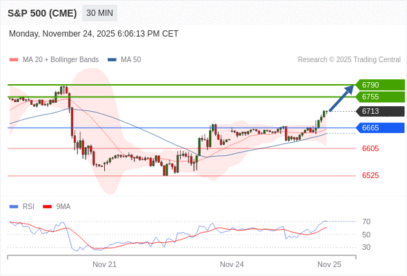 在 6665 之上,看涨,目标价位为 6755 ,然后为 6790 。