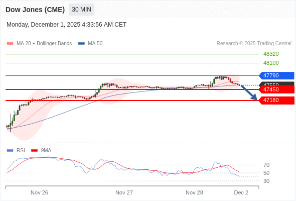 在 47790 之下,看跌,目标价位为 47450 ,然后为 47180 。