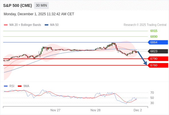 在 6864 之下,看跌,目标价位为 6790 ,然后为 6760 。