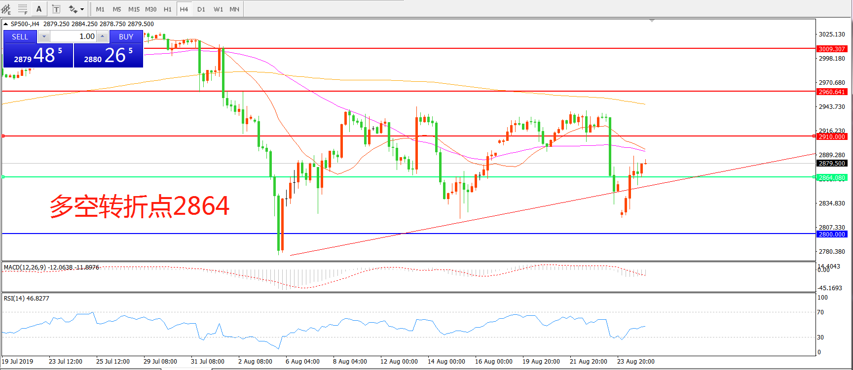 交易策略:在2864.00之上看涨,目标2910.00      2960.00