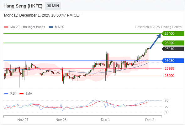 在 26080 之上,看涨,目标价位为 26290 ,然后为 26400 。