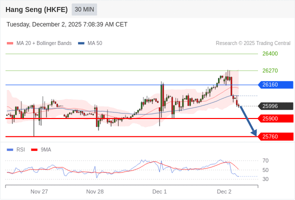 交易策略: 在 26160 之下,看跌,目标价位为 25900 ,然后为 25760 。