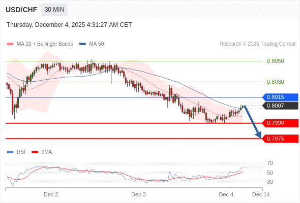 在 0.8015 之下,看跌,目标价位为 0.7990 ,然后为 0.7975 。