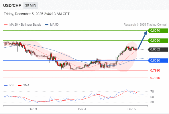 在 0.8010 之上,看涨,目标价位为 0.8050 ,然后为 0.8070 。