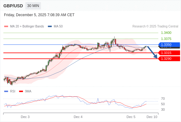 在 1.3350 之下,看跌,目标价位为 1.3315 ,然后为 1.3290 。