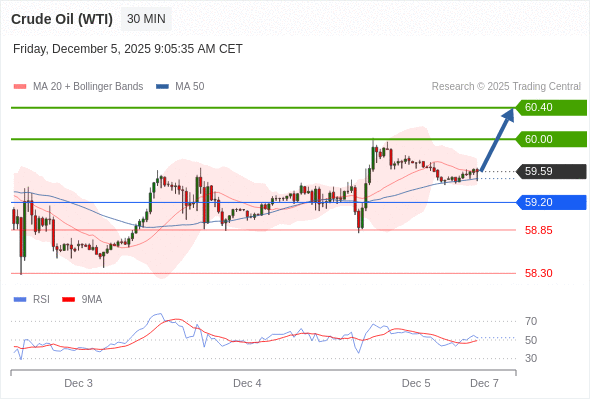 在 59.20 之上,看涨,目标价位为 60.00 ,然后为 60.40 。