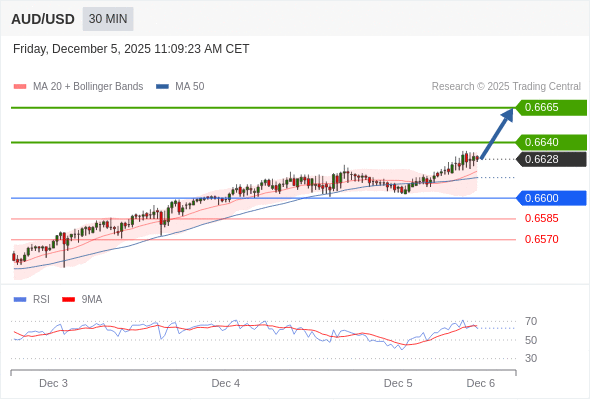 在 0.6600 之上,看涨,目标价位为 0.6635 ,然后为 0.6650 。