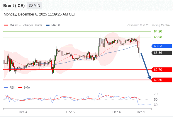 在 63.65 之下,看跌,目标价位为 62.70 ,然后为 62.30 。