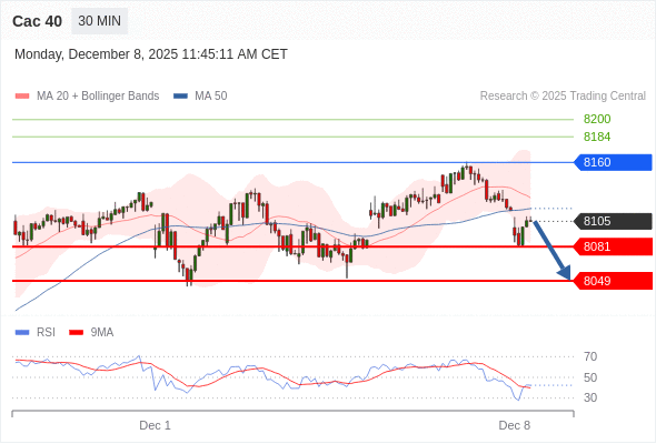 在 8160 之下,看跌,目标价位为 8081 ,然后为 8049 。