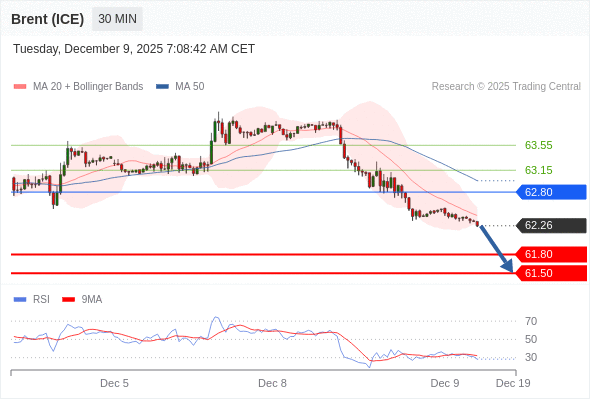 在 62.80 之下,看跌,目标价位为 61.80 ,然后为 61.50 。