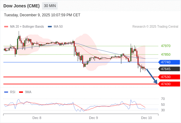 在 47740 之下,看跌,目标价位为 47530 ,然后为 47430 。
