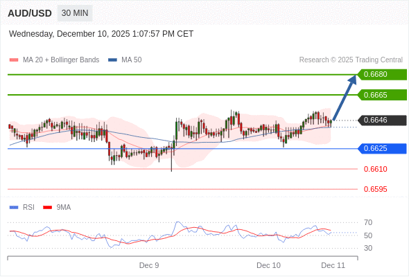 在 0.6625 之上,看涨,目标价位为 0.6665 ,然后为 0.6680 。