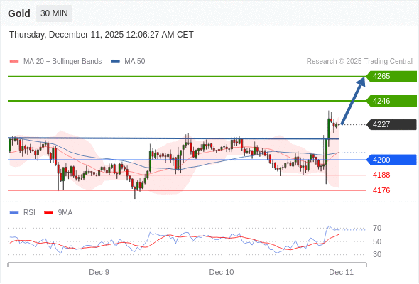 在 4200 之上,看涨,目标价位为 4246 ,然后为 4265 。