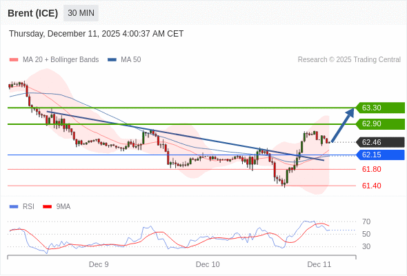 在 62.15 之上,看涨,目标价位为 62.90 ,然后为 63.30 。