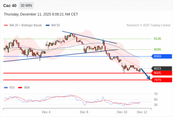 Cac 40 当日内: 存在压力。