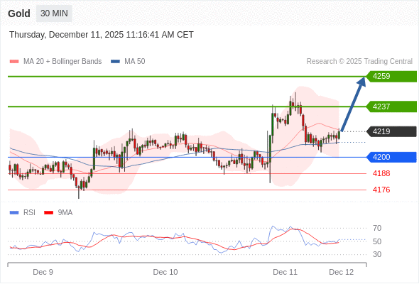 在 4200 之上,看涨,目标价位为 4237 ,然后为 4259 。