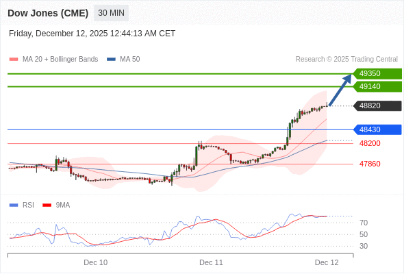 在 48430 之上,看涨,目标价位为 49140 ,然后为 49350 。