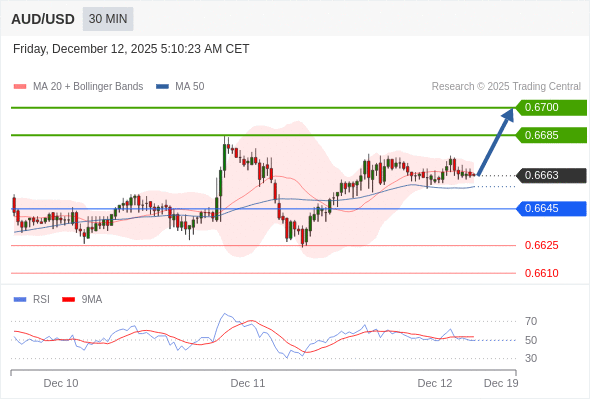在 0.6645 之上,看涨,目标价位为 0.6685 ,然后为 0.6700 。