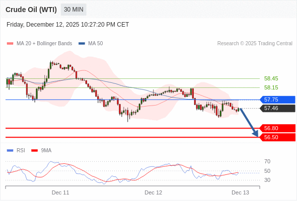 交易策略: 在 57.75 之下,看跌,目标价位为 56.80 ,然后为 56.50 。