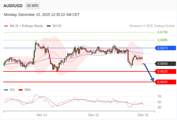 在 0.6670 之下,看跌,目标价位为 0.6625 ,然后为 0.6605 。