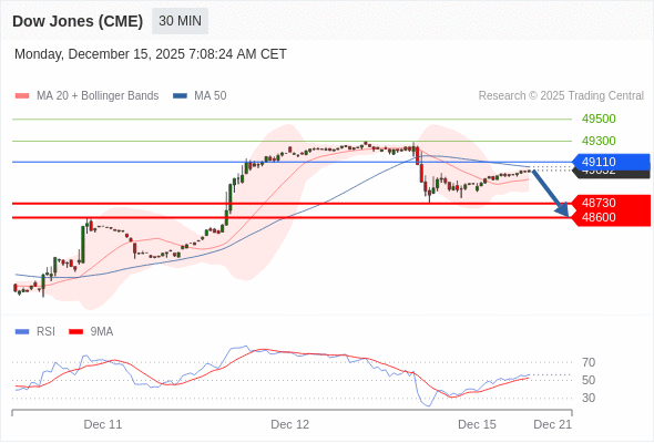 在 49110 之下,看跌,目标价位为 48730 ,然后为 48600 。