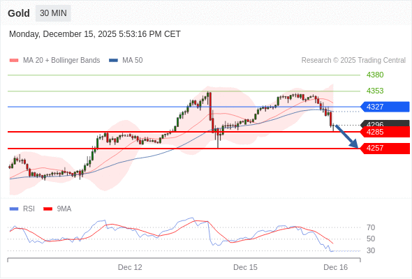 在 4327 之下,看跌,目标价位为 4285 ,然后为 4257 。