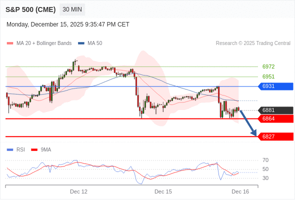 在 6931 之下,看跌,目标价位为 6864 ,然后为 6827 。