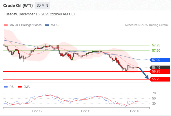 交易策略: 在 57.00 之下,看跌,目标价位为 56.25 ,然后为 55.75 。