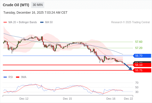 在 56.70 之下,看跌,目标价位为 56.10 ,然后为 55.75 。