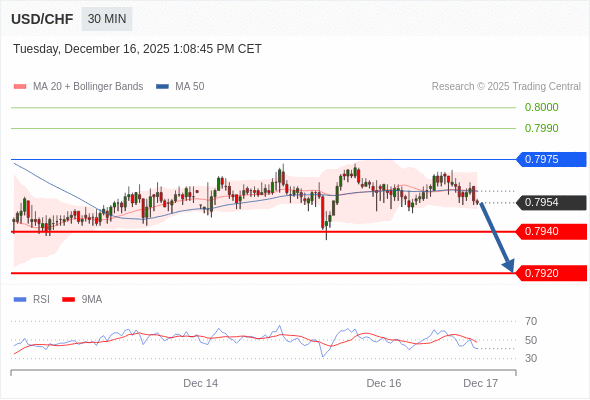 在 0.7975 之下,看跌,目标价位为 0.7940 ,然后为 0.7920 。
