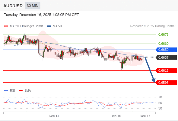 在 0.6650 之下,看跌,目标价位为 0.6615 ,然后为 0.6595 。