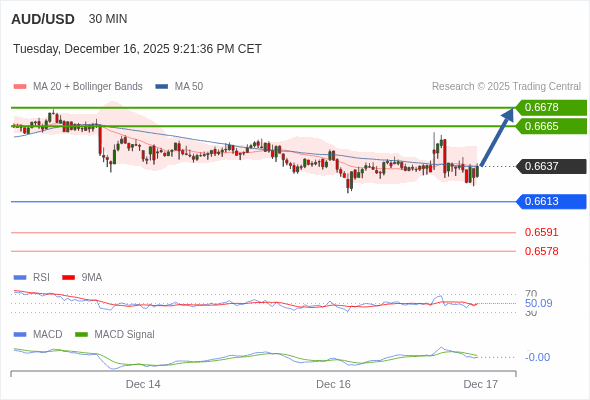 澳元/美元 当日内 : 调整至 0.6613 处,在反弹上升之前。