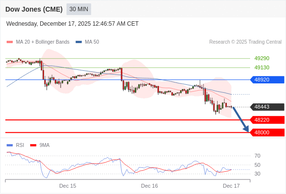 在 48920 之下,看跌,目标价位为 48220 ,然后为 48000 。