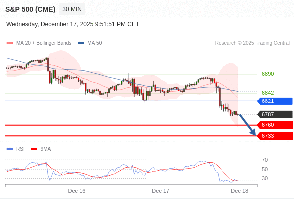 在 6821 之下,看跌,目标价位为 6760 ,然后为 6733 。
